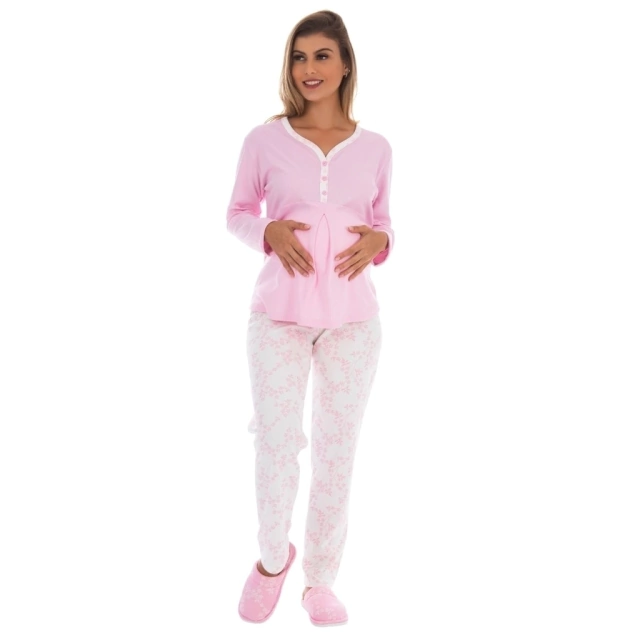 Pijama Inverno Feminino Canelado Gestante, tem um estilo super elegante e despojado.