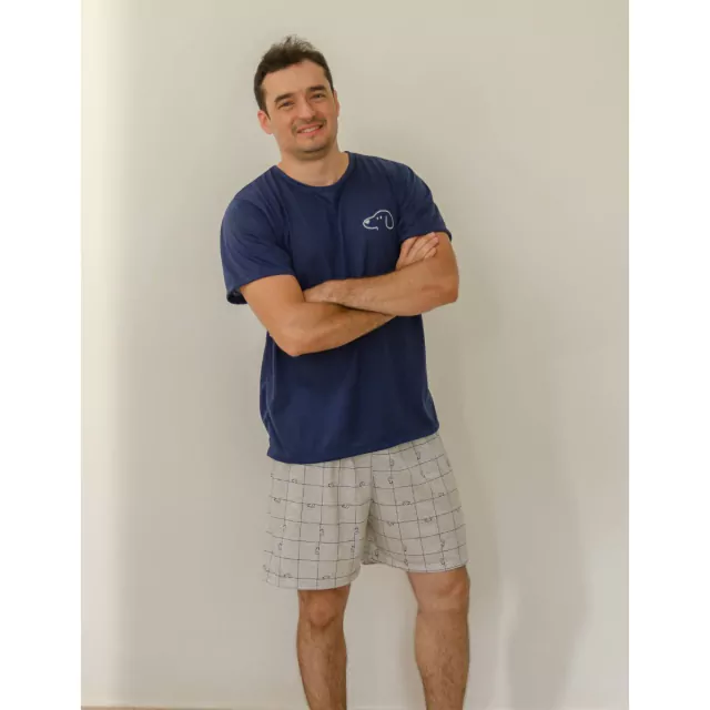 Um pijama para usar nos dias quentes, esse pijama masculino, com detalhe no short e blusa.